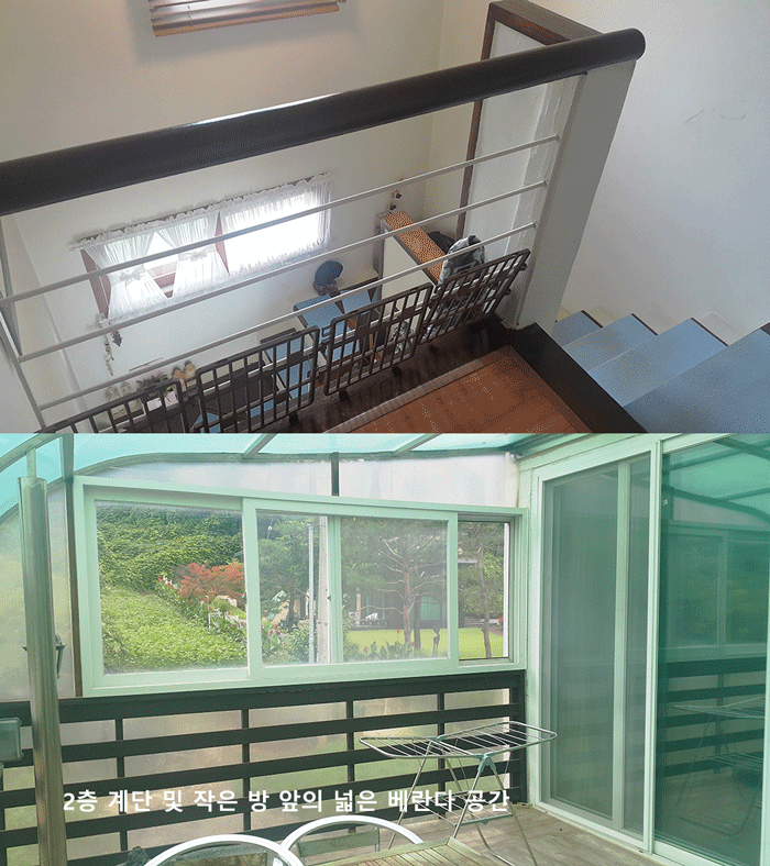 특히 2층의 베란다가 매우 넓고 천장이 되어 있어 공간을 효율적으로 사용할 수 있습니다. 또한 1층 거실에서 바로 보이는 작은 미니 정원은 거실에서 휴식을 취할 때 좋은 전경을 만들어 줍니다