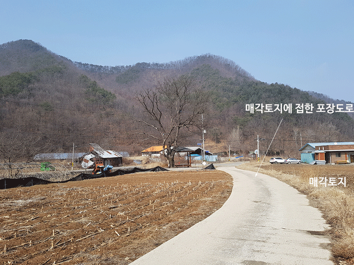 토지 주변에는 계곡이 가까이 있고 마을회관도 바로 앞에 있어 외롭지 않고 조용한 곳입니다.