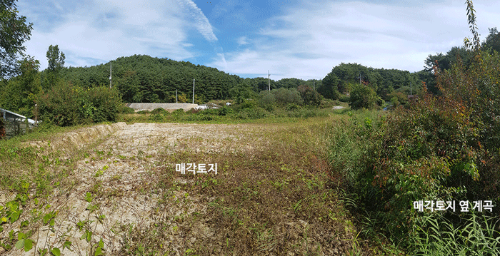 매각 토지의 지목은 답이나 토목공사를 하여 토지를 높여놓은 평탄한 나대지로 유실 면적이 거의 없고 오히려 하천부지와 접해있어 실평수보다 조금 더 넓게 사용 가능