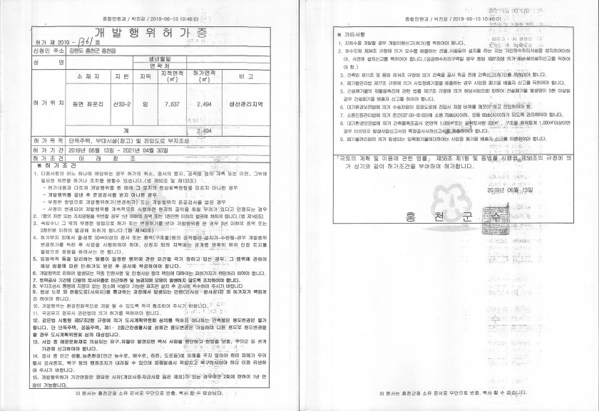 매각 토지는 전체 2,310평 중 754평에 대해 단독주택 및 창고 등으로 허가를 받았습니다.