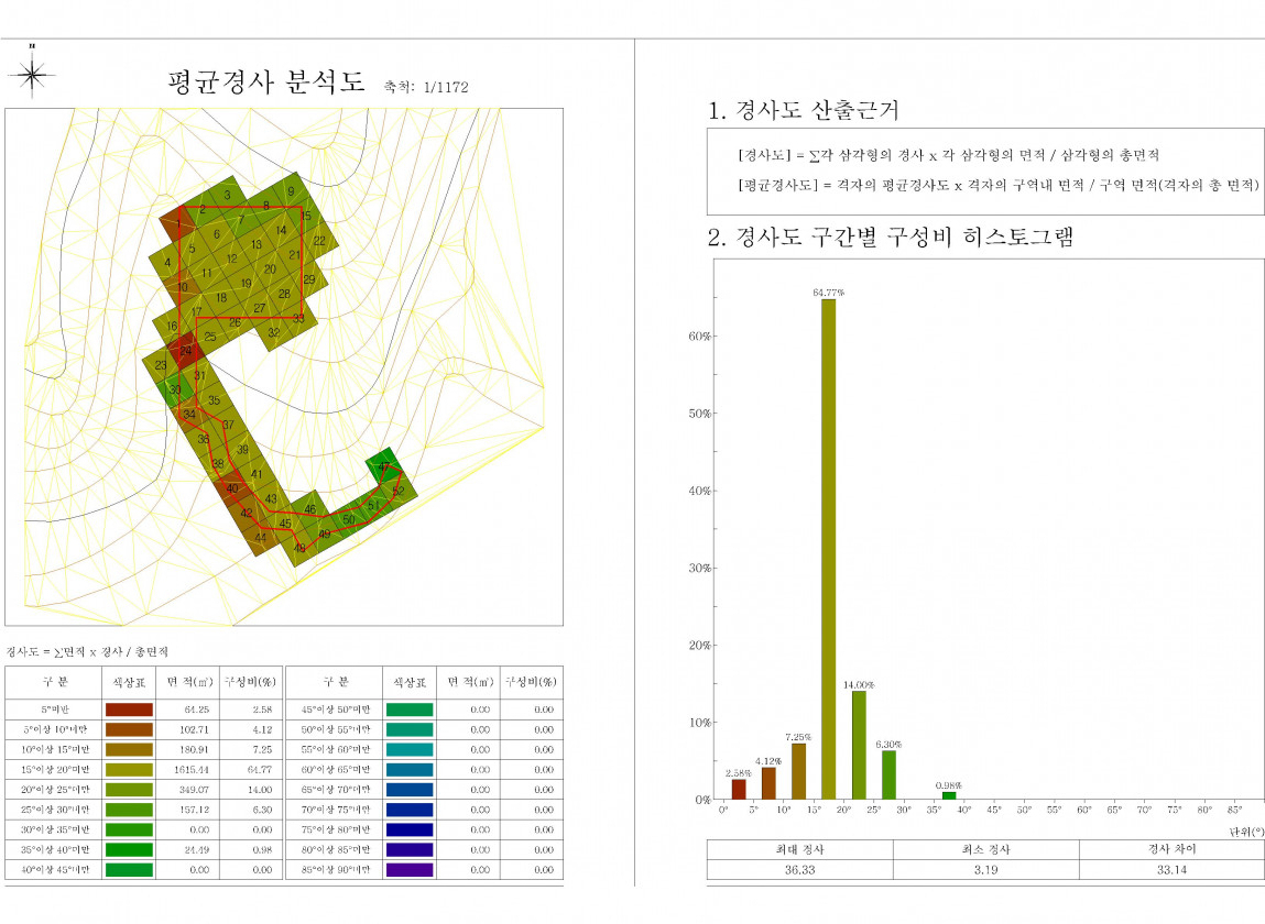 임야의 경사도는 15~20도 정도로 완만하여, 전체를 허가받아서 3~4채 정도 주택을 건축하셔도 좋은 토지입니다.