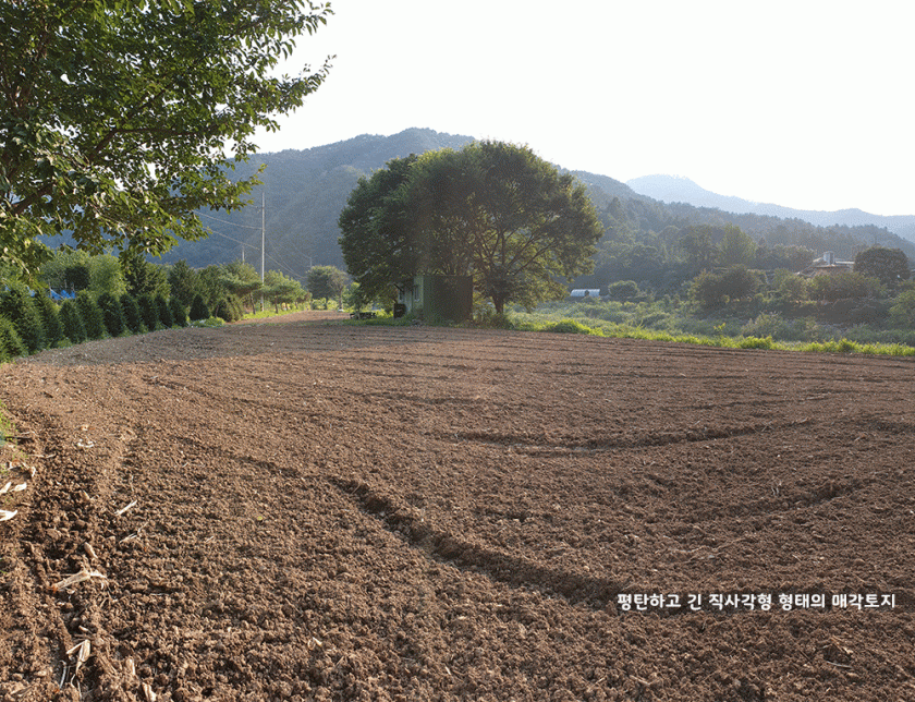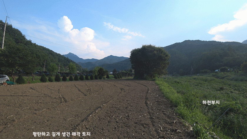 토지는 총 3필지로 전체가 하천과 도로에 길게 접해 있고 경사면이나 꺼지는 부분 없이 토지 전체가 평탄하고 반듯합니다.