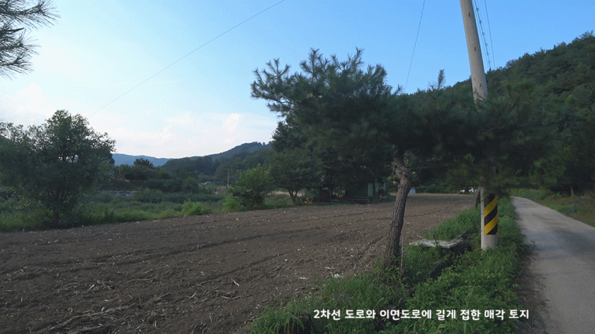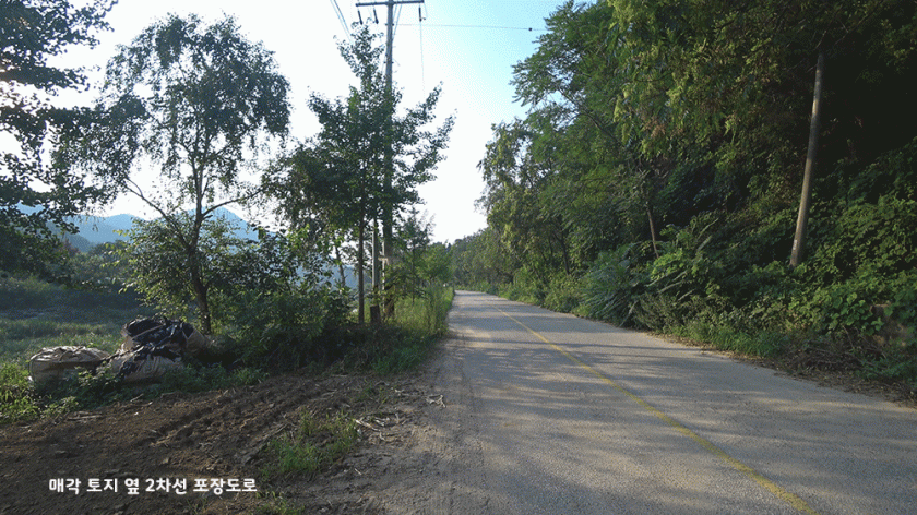 매각 토지는 공작산 자연휴양림과 가까운 마을에 위치하여 있고 매각 토지 안쪽으로는 드문드문 15채 미만의 주택들이 들어서 있는 한적한 곳입니다.