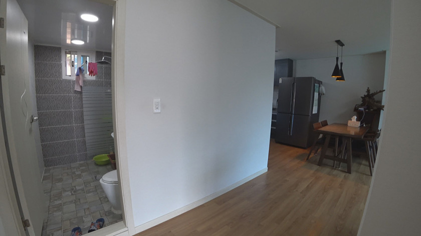 내부 구조: 방 2, 화장실 2, 주방 및 거실, 다용도실