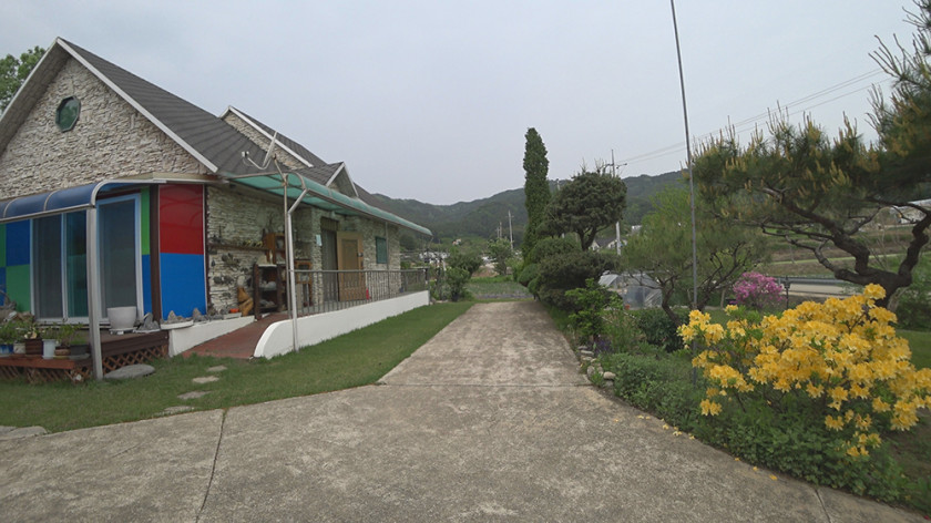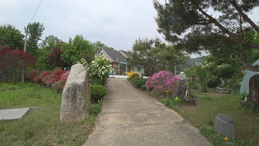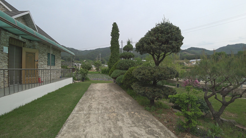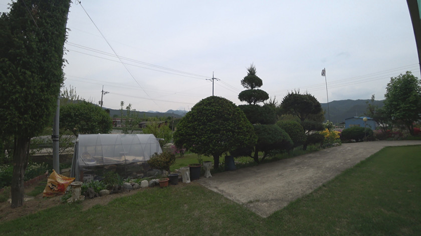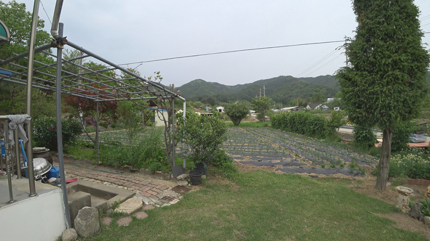 외부에는 주택 건물과 배후 임야 사이 공간에 지붕이 있는 마루 공간이 있어 여름철에 시원하게 휴식하거나 김장 등 외부 작업하기가 좋고, 그 앞으로 텃밭과 과실수, 각종 꽃나무를 잘 가꾸어 두었습니다.