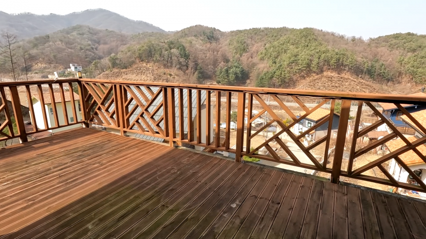 3층 9평(일반 목구조) - 방, 화장실, 드레스룸으로 되어 있고 야외 외부 테라스가 있음