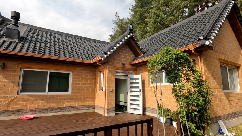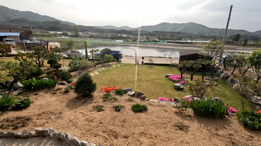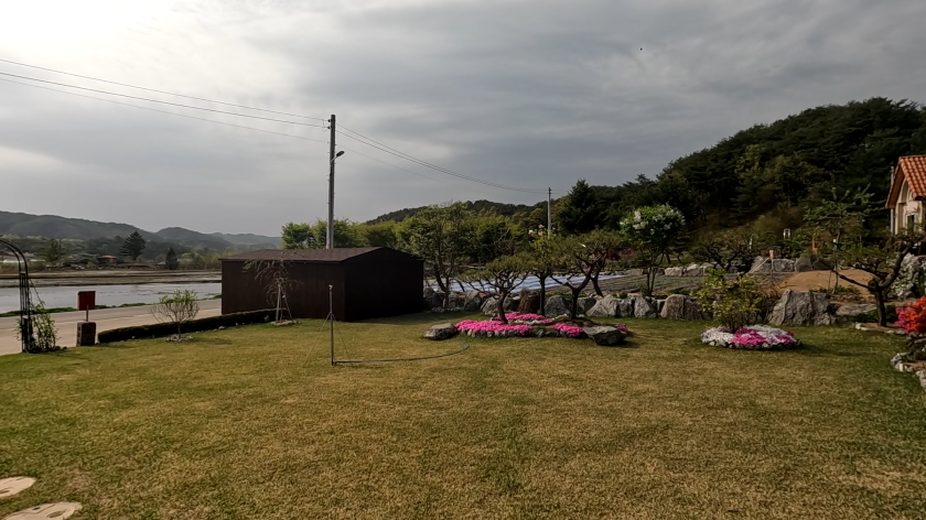 주택 뒤에는 개발 불가능한 맹지 임야와 접한 부분을 활용해 토굴을 만들어 자연 저장고를 만들고, 토굴 위에는 정자를 만들어 정자에서 바라보는 전망이 매우 좋아 소나무그늘 아래에서 힐링과 휴식을 취하기 좋습니다.