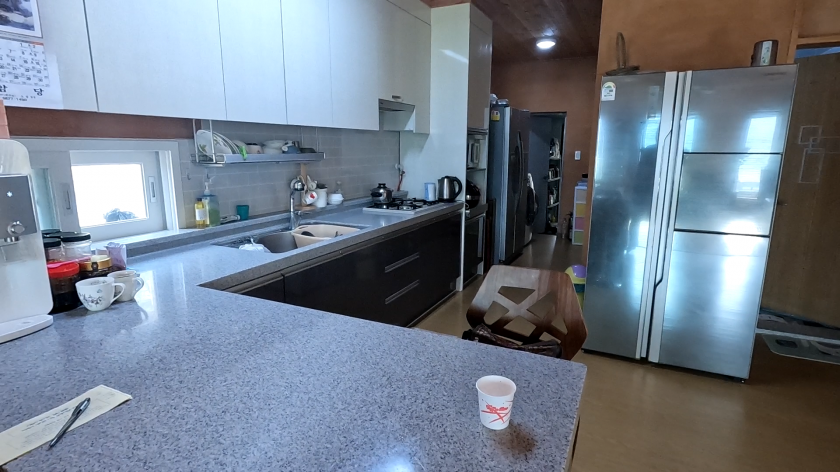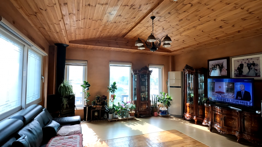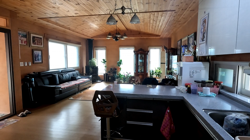 내부는 방 2, 화장실 1, 거실, 주방, 다용도실로 구성되어 있고 황토 벽돌과 내장재로 벽을 두껍게 하고 지인 2중 창호로 시공하여, 주인분이 평생 거주할 목적으로 단열에 신경 많이 써서 건축하였습니다.