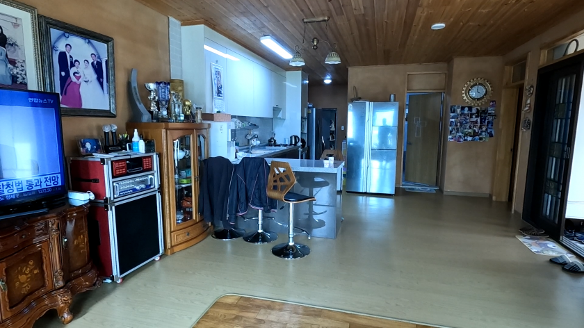 두 분만 거주하기에 불필요하게 방을 많이 구성하지 않고 대신 거실 평수를 크게 하여 동일한 평수의 주택 대비 구조가 심플하고 넓어 보입니다.