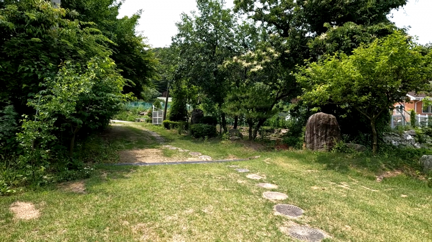 대지 옆으로는 길게 마르지 않는 작은 개울물이 흐르고, 그 옆으로 연못이 조성되어 있습니다.