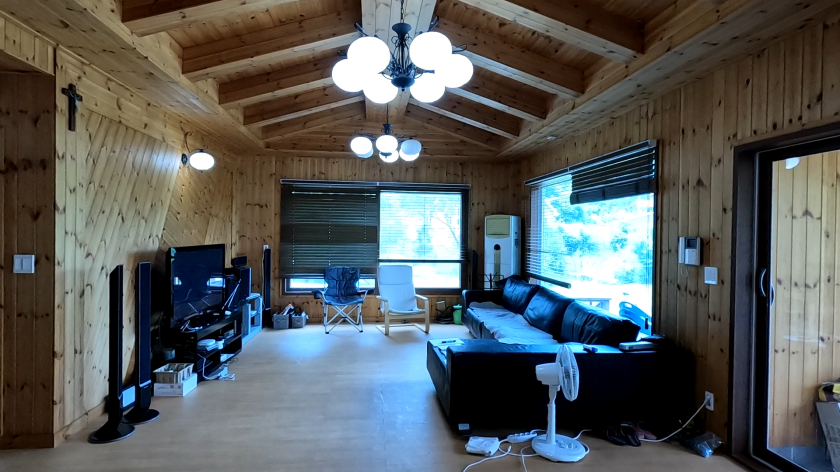 매도인분이 골프 치시고 별장 용도로 지인분들과 사용하기 위해 거실과 주방을 최대한 크게 구성하고, 큰 창을 두어서 밖의 전경을 감상하기 좋도록 하였습니다.