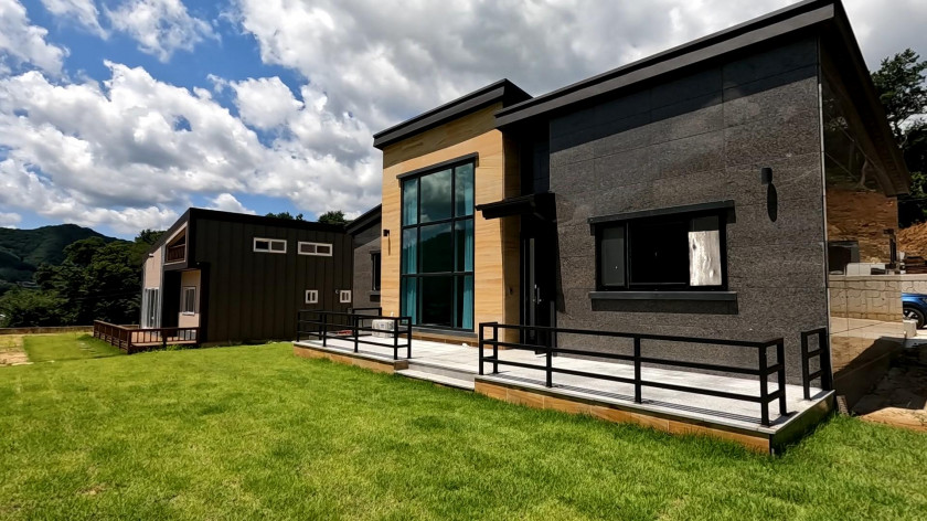 고속도로와 서울 가까운 낚시와 물놀이 가능한 홍천강 계곡 인접한 강 조망 신축 강원도 홍천 철콘 주택