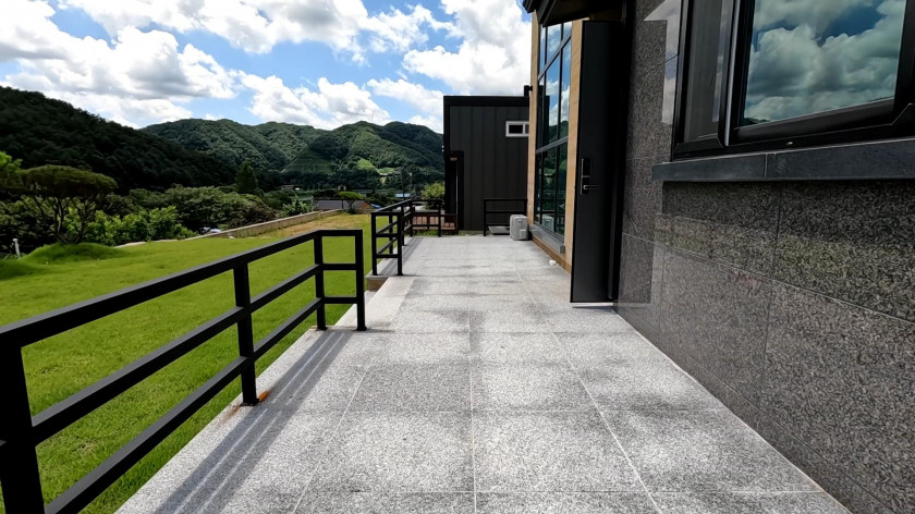 특히 데크를 대리석으로 시공하여, 목재 데크의 관리적인 단점을 없애고 주말 주택이나 세컨드하우스로 이용함에 불편함이 없도록 하였습니다.