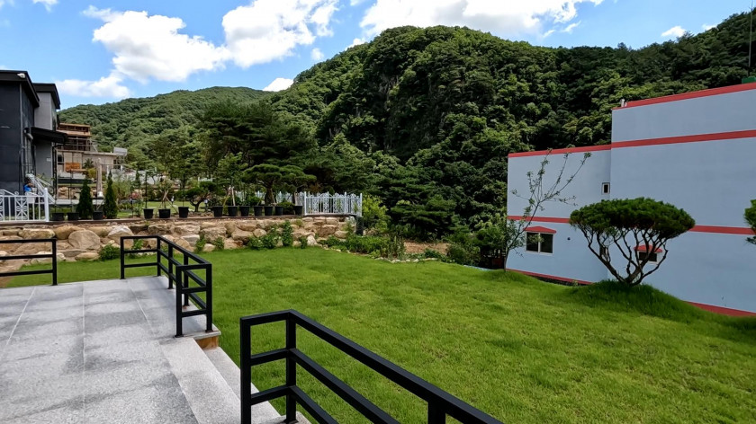 도보로 1~2분 아래로 내려가는 홍천강이 있어서 낚시를 하거나 물놀이를 즐기기 좋고,