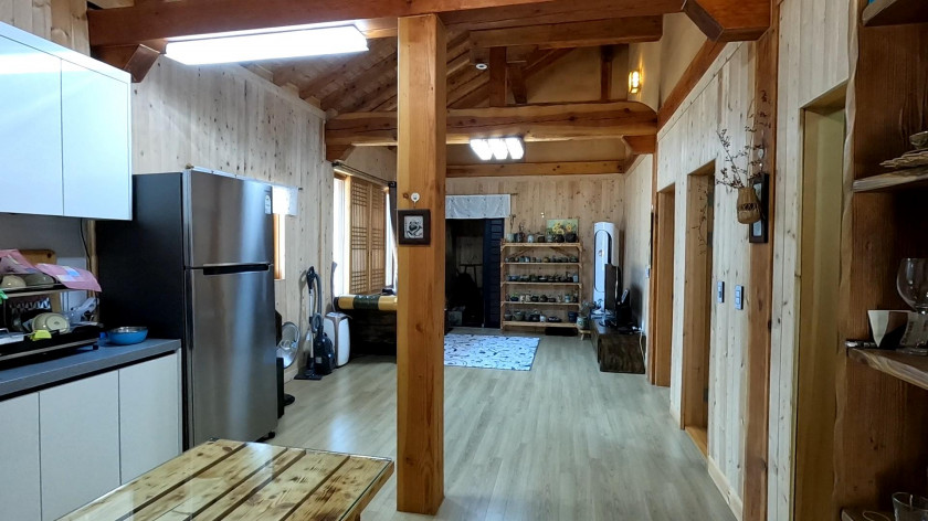 주택은 황토 벽돌과 원목으로 건축한 기와지붕의 목조 주택입니다.