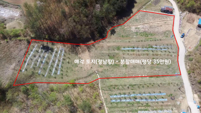 매각 금액 : 평당 35만원(최소 분할 면적 143평 - 5천만원)