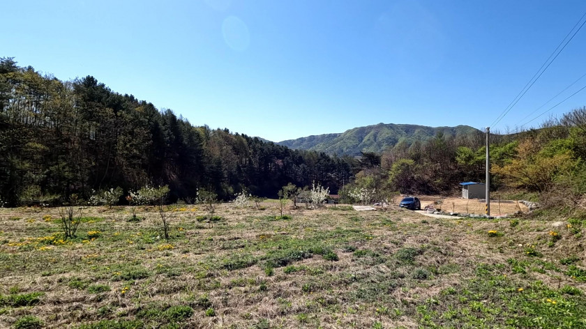 홍천 남향 토지 상수도 전기 기반 시설 있는 경치 좋은 토목 필요 없는 평탄한 토지 143평 5천만원