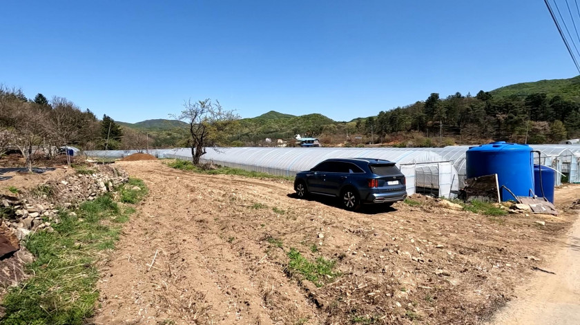매각 토지 앞쪽은 대부분 농업진흥구역 내 농지이므로 특별한 시설이 들어올 것이 없으며, 주변의 대부분이 비닐하우스 농장.