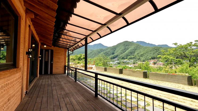 집이 숨을 쉬기에 여름에는 시원하고 겨울에는 따뜻하며, 앞쪽이 영구적으로 막힘이 없어서 사계절을 경치를 즐기기 좋습니다.