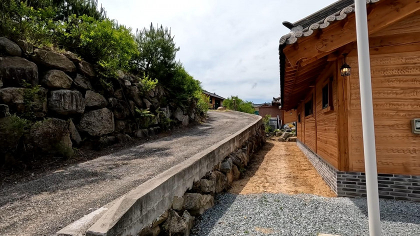 부동은 아궁이 찜질을 할 수 있도록 아궁이를 외부에 설치하고 그 위에 렉산으로 비가 들어오지 않도록 지붕이 설치되어 있으며, 주동과 동일한 한옥주택으로 설치하였습니다.