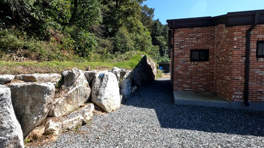 그리고 주택 입구 쪽과 거실 앞쪽 외부공간을 데크가 아닌 화강석으로 마무리하여 관리할 것 없이 깔끔하게 사용할 수 있습니다.