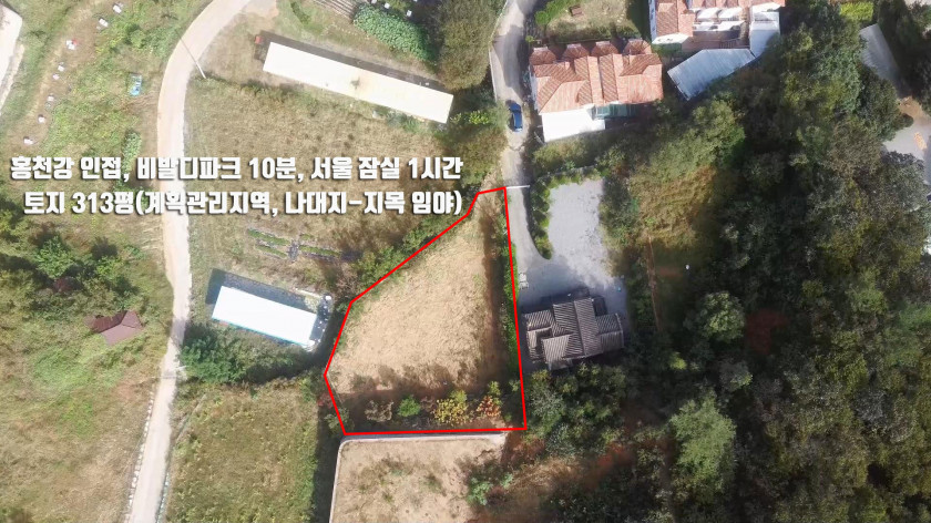 홍천 서면 팔봉리 비발디 인근 홍천강 가깝고 서울 1시간 상수도 인입 시세보다 저렴한 토지 매매