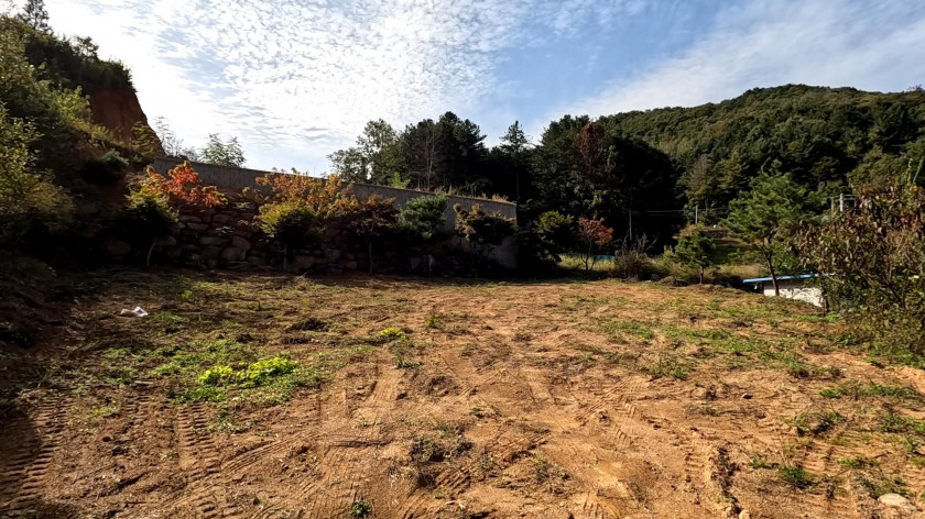 토지는 토목공사가 필요 없이 옹벽과 석축 작업이 완료된 평탄한 형태입니다.