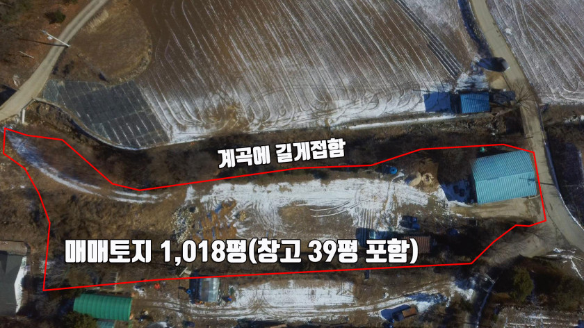 토지의 한쪽 면 전체가 길게 계곡에 접해 있음