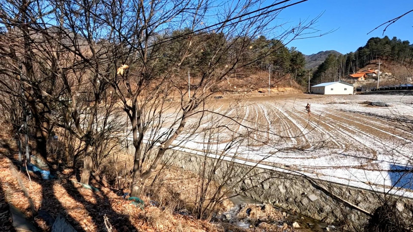 토지는 토목공사가 필요 없는 평탄한 토지이고 계곡에 한쪽 면 전체가 길게 접해 있음