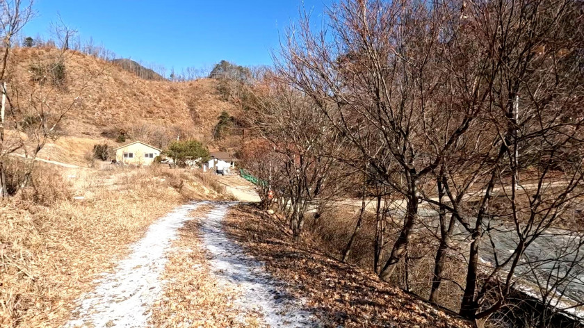 도보 5분 거리에 버스정류장과 물놀이나 수영 가능한 큰 계곡이 있고 산책로가 있음