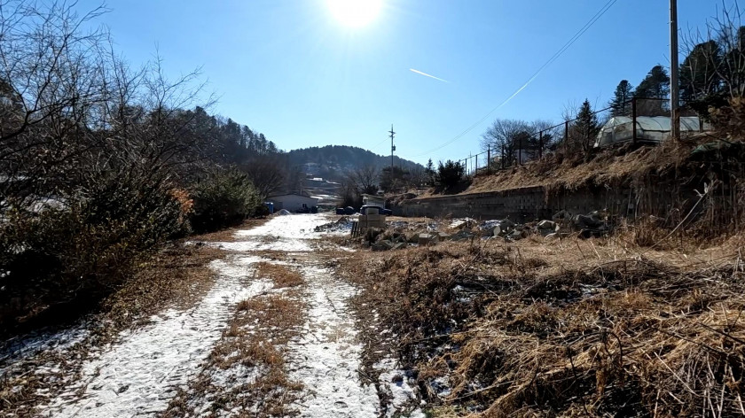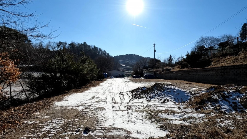 2차선 도로에서 약 200m 안쪽을 포장된 도로로 진입