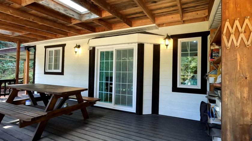단열이 취약한 이동식 주택을 설치한 것이 아닌 일반목구조로 2중 샷시를 설치한 주택입니다.