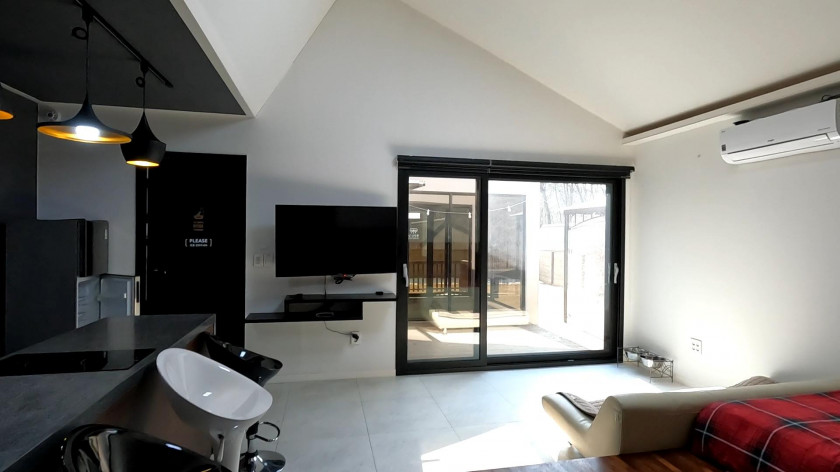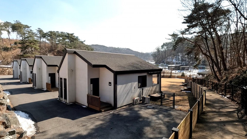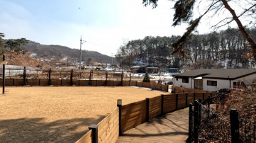 현재 애견펜션으로 운영되고 있어서 객실 내부는 반려견과 숙박할 수 있도록 특화가 되어 있으며, 야외에는 넓은 잔디정원과 대형 인피니티풀이 설치되어 있습니다.