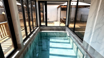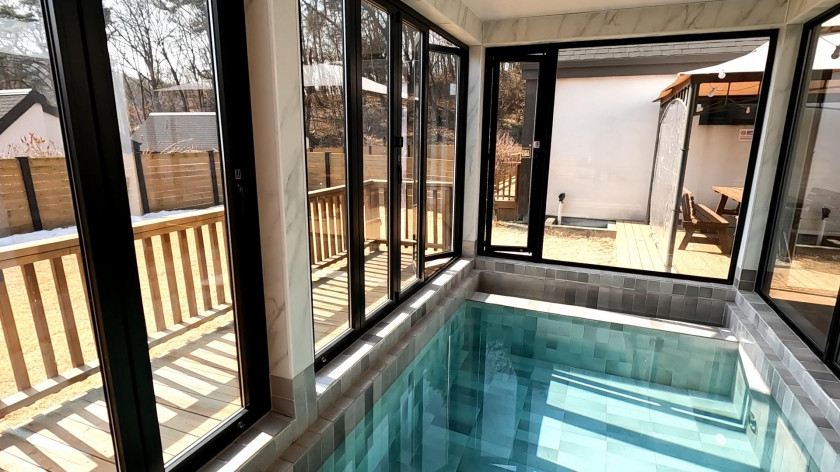 개별 수영장은 원격으로 자동청소와 난방, 급수, 폐수, 가동을 할 수 있어서 관리가 매우 편하며, 실내에 설치되어 계절 상관없이 즐길 수 있습니다.