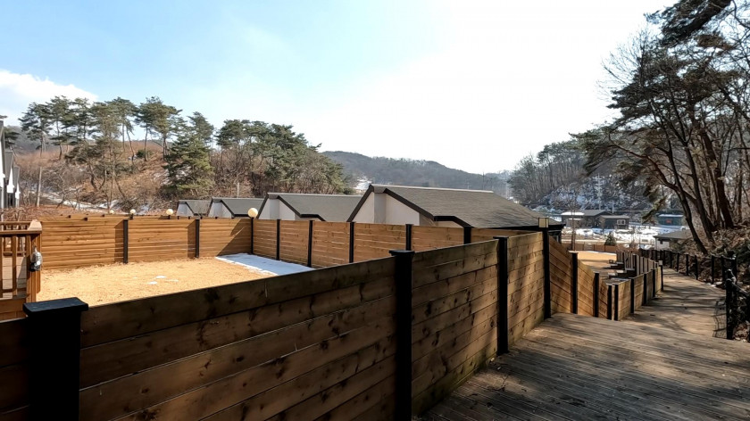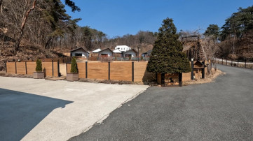 경계를 따라 휀스가 잘 설치되어 있고, 객실별로 주차할 수 있도록 아스팔트 포장도로가 펜션내부에 잘 설치되어 있습니다.
