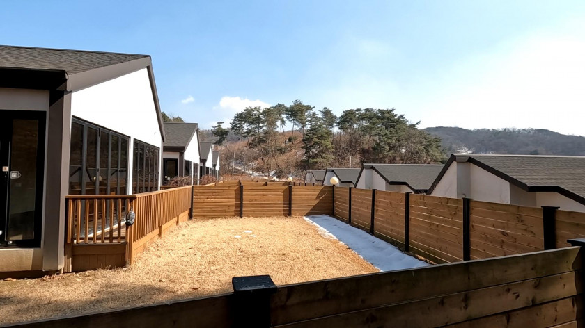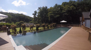 부대 시설 : 개별 수영장 4개, 단체 대형 인피니티풀(18m), 잔디운동장 약 500평, 산책로, 넓은 데크