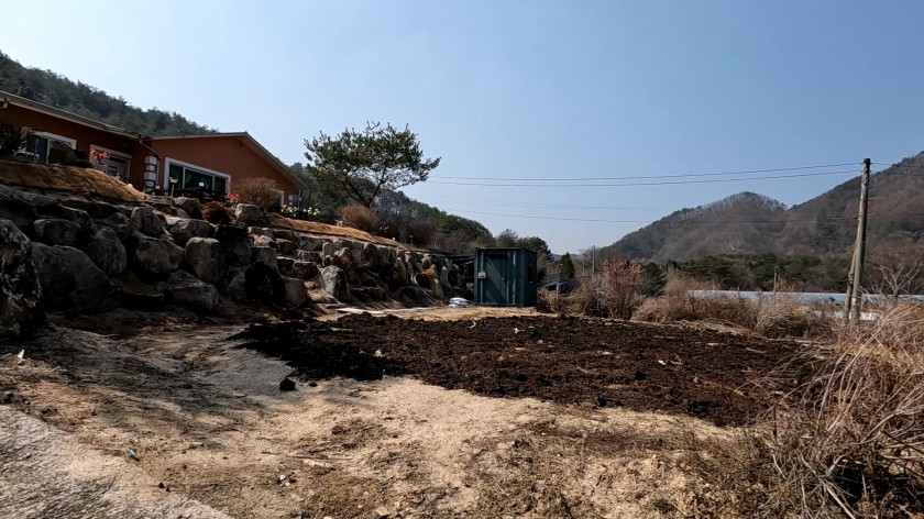 대지와 농지는 높이 차이를 두고 석축공사로 두 단으로 나누어져 있습니다.