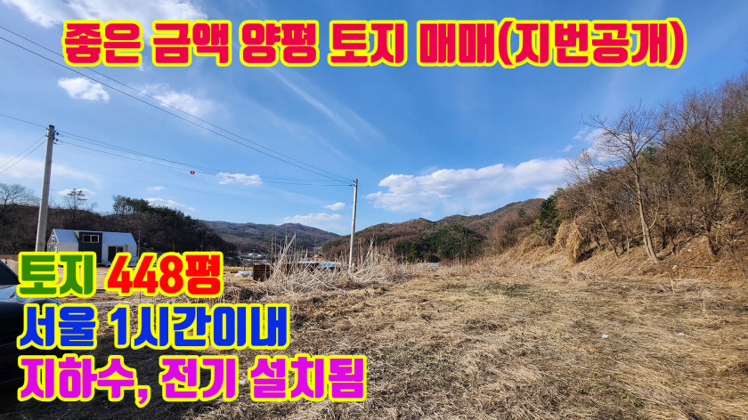 서울에서 1시간 이내의 고속도로 IC 가까운 좋은 금액의 양평 토지를 찾으셨다면 추천드립니다.
