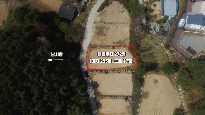 토지 지목 : 임야(255평-허가 완료된 나대지), 도로 지분(17평)