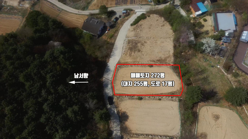 기반 시설 : 마을 상수도 인입됨, 전기 및 통신 즉시 설치 가능