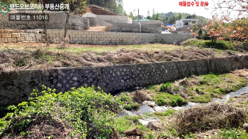 토지의 뒤쪽으로는 임야에 접해 있고, 앞쪽에는 계곡이 흐르며, 정남향으로 햇빛이 매우 잘 듭니다.