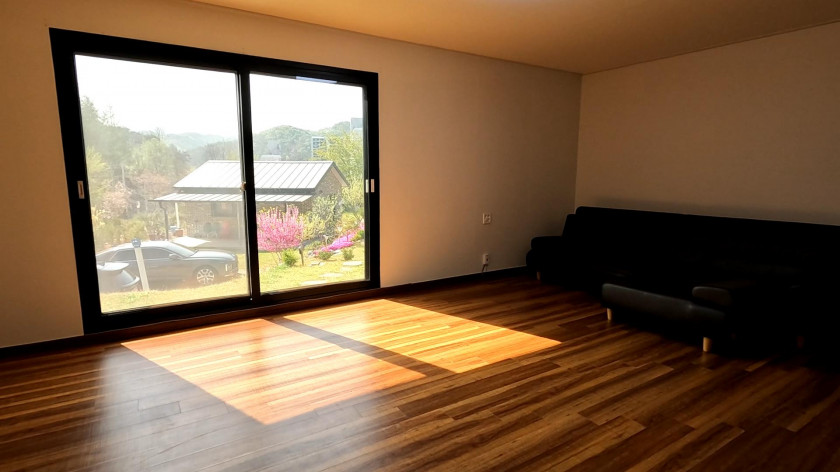 내부 공간은 큰 방이 2개가 있는데 방 1개는 약 9평으로 거실과 연결되어 있고 통창으로 되어 있어서 다양한 공간으로 활용이 가능합니다.