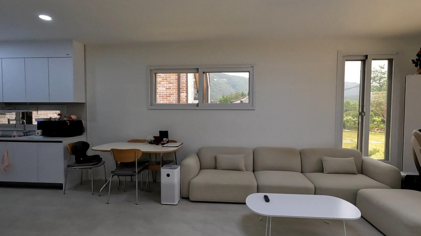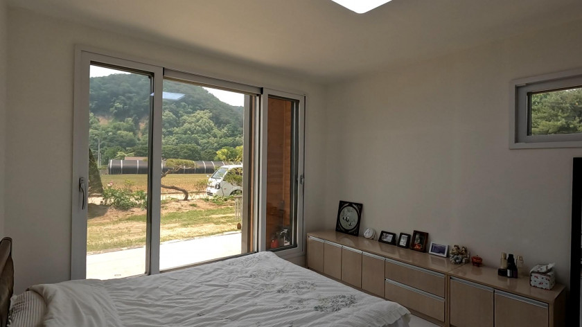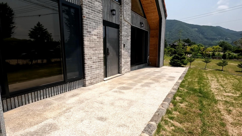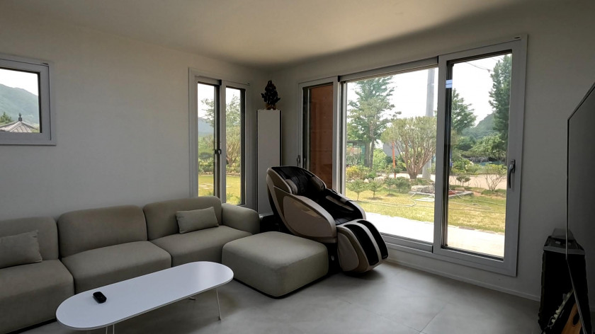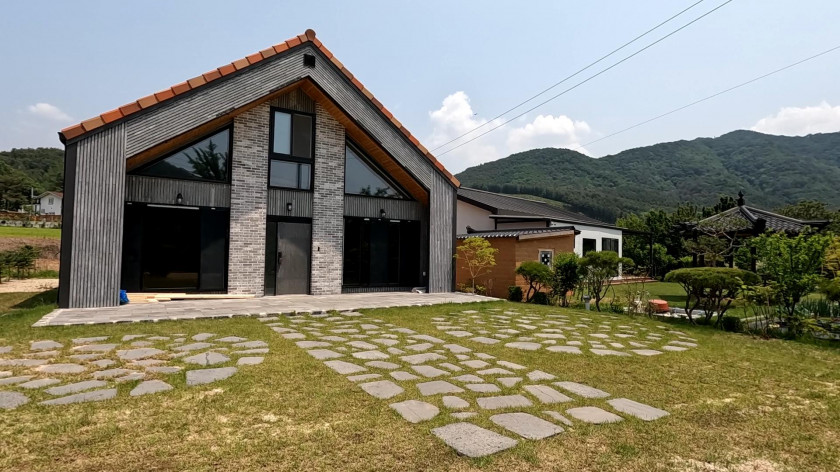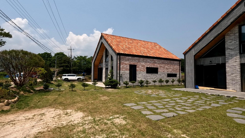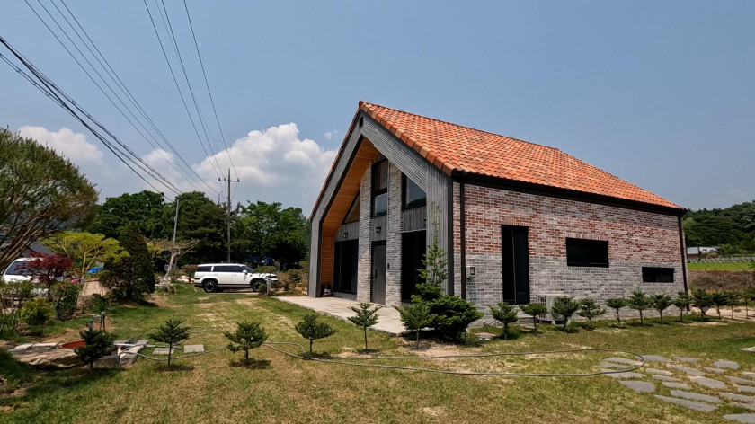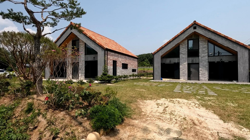 건물은 신축주택으로 조경업과 건축업을 오래 하신 주인분이 한 채는 본인 거주 용도로 다른 한 채는 독채형 펜션으로 운영하려고 건축하였습니다.