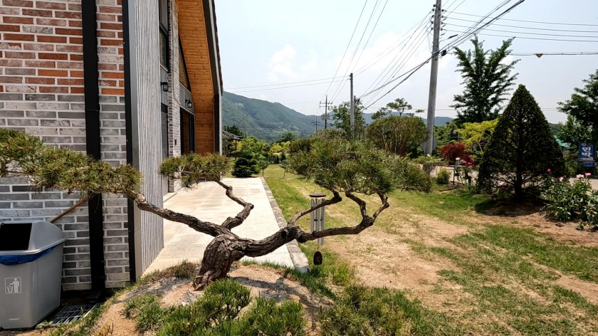 건축비만 평당 약 800만원을 들여서 건축하였고, 외부에는 최소 천만원에서 이천만원을 호가하는 소나무들로 식재가 되어 있습니다.