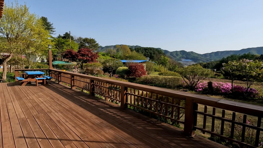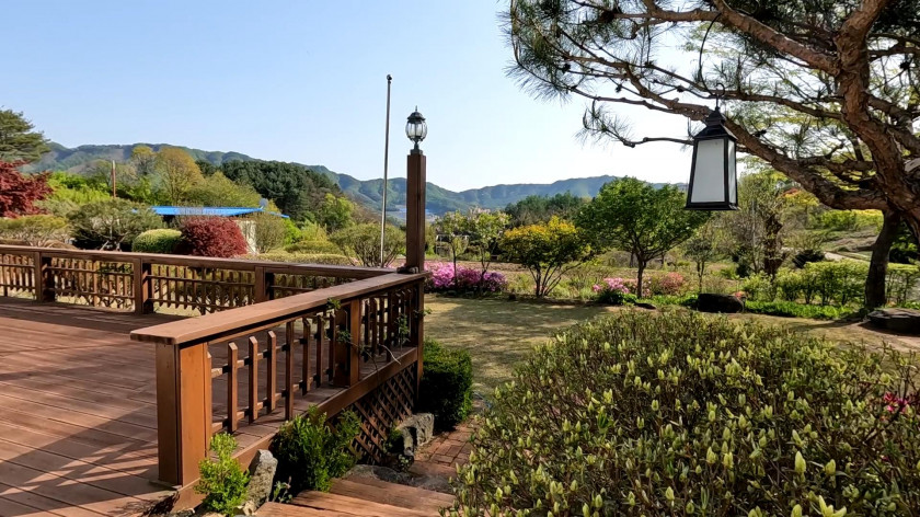 강원도 홍천 수타사 및 공작산 인근의 공기 좋은 조경과 잔디정원이 잘 관리된 잘 지은 전원주택