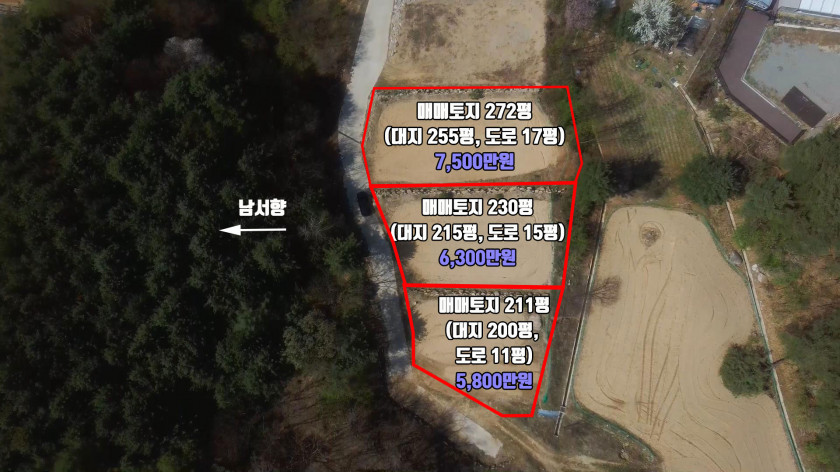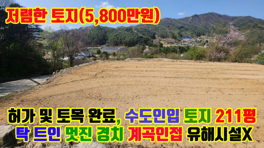 기반 시설 : 마을 상수도 인입됨, 전기 및 통신 즉시 설치 가능
