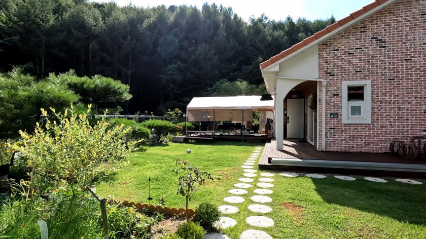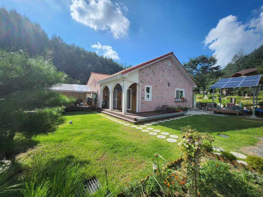 생활환경 좋은 횡성 전원주택 34평과 정남향의 산으로 둘러싸인 경치 좋고 공기 맑은 토지 496평