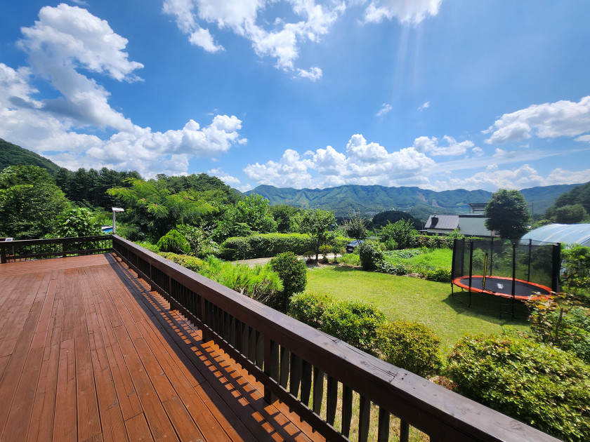 데크나 거실에서 보이는 경치가 수려하며, 공기가 맑고 청정한 곳입니다.