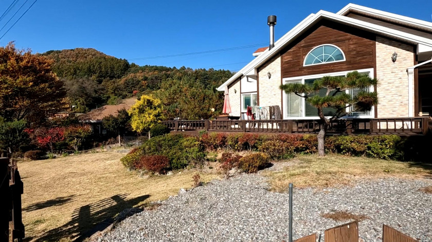 경치가 매우 좋은 조경수와 정원이 잘 관리된 이쁜 홍천 전원주택 매매