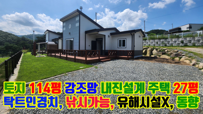 유해시설 없고 경치 좋은 잘 지은 홍천강 인근 낚시 가능한 신축급 전원주택 매매입니다.